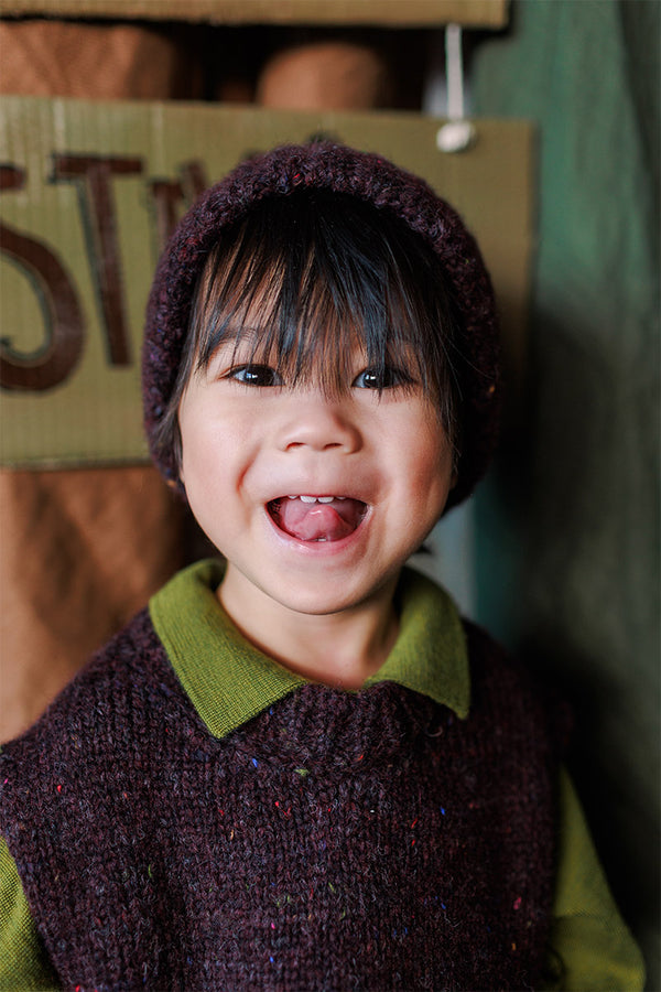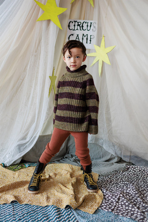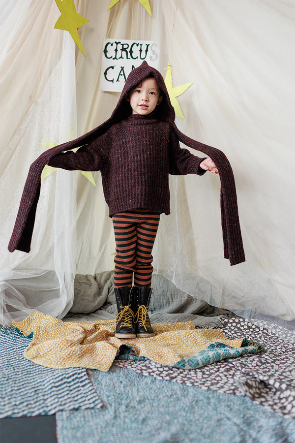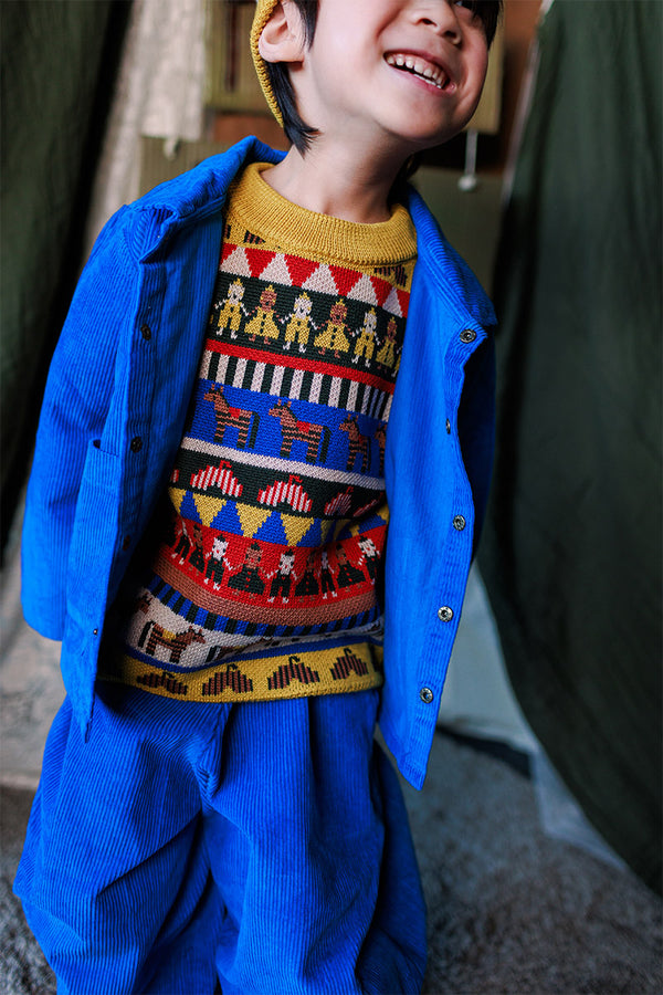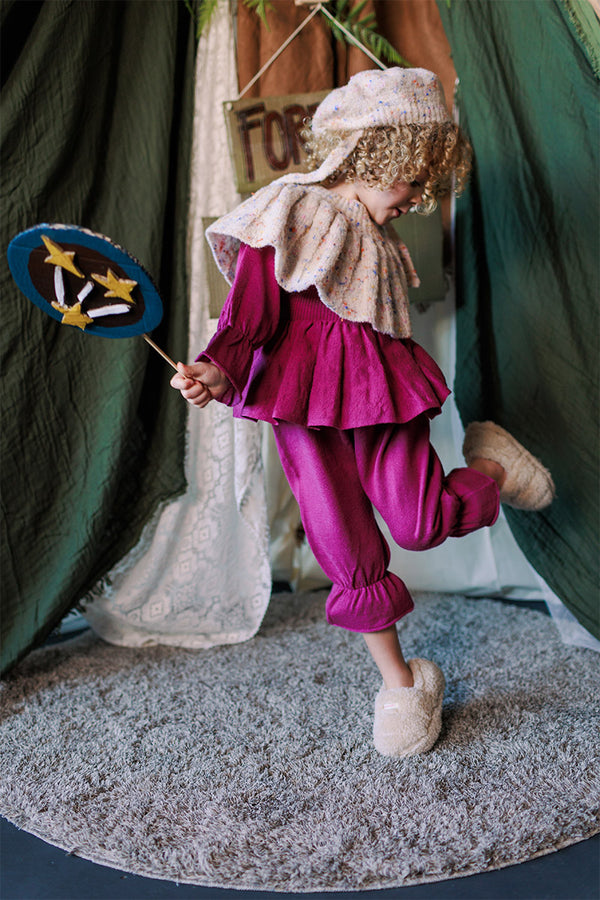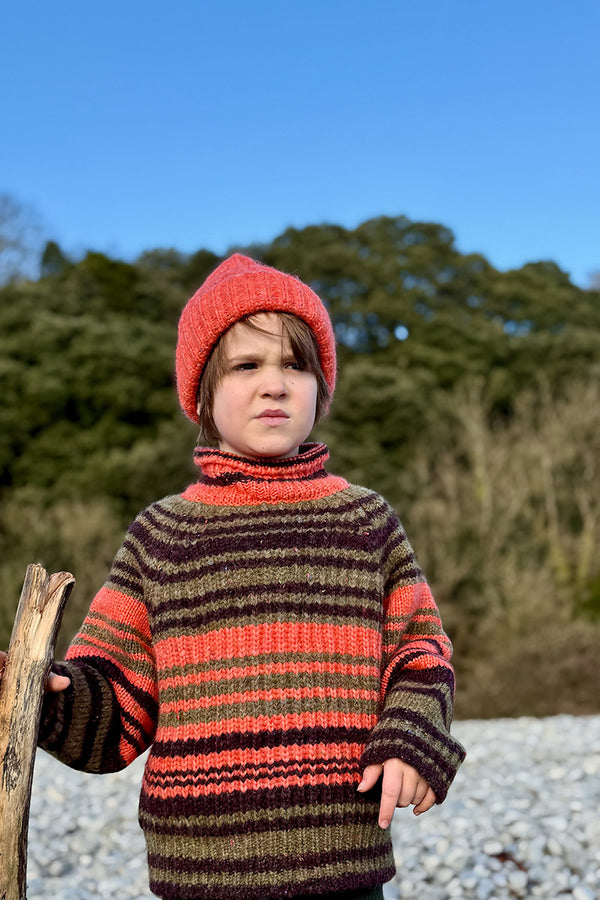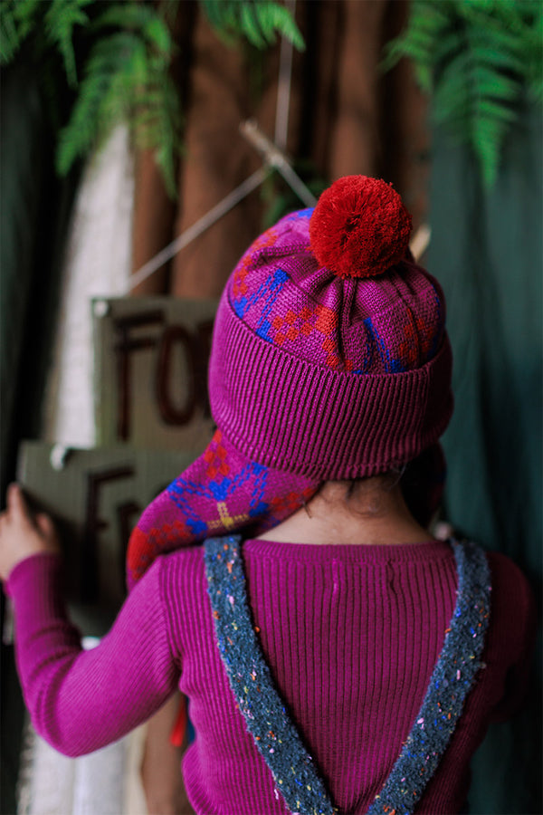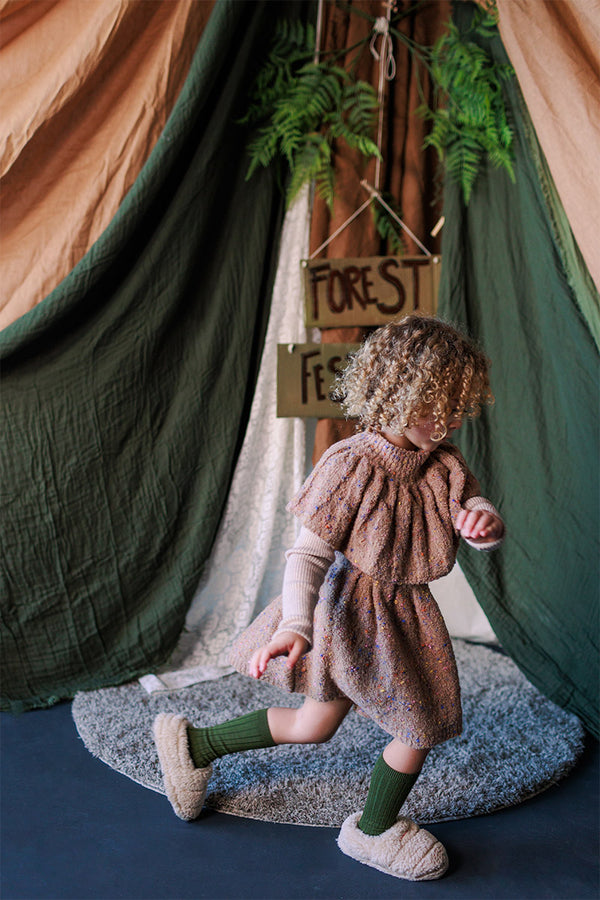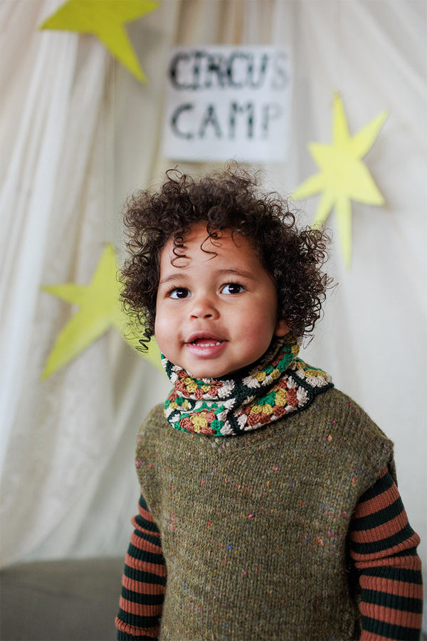 Come with us to the Circus Camp and the Forest Festival, where the vibrant energy of the 80s combines with outdoor adventures for Autumn days. A whimsical combination of nostalgia and nature, mixing retro jacquards and stripes, fun accessories, hand crochet, twirly dresses and more . All in our amazingly soft superfine Merino Wool!