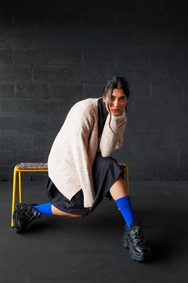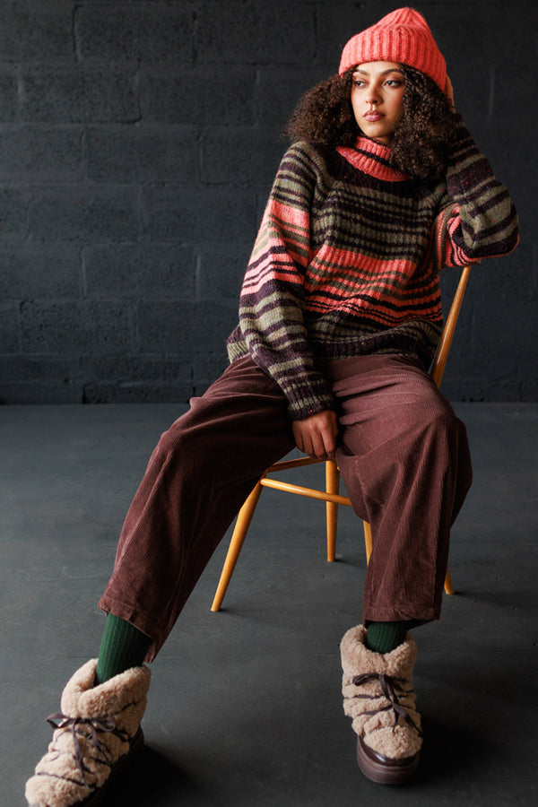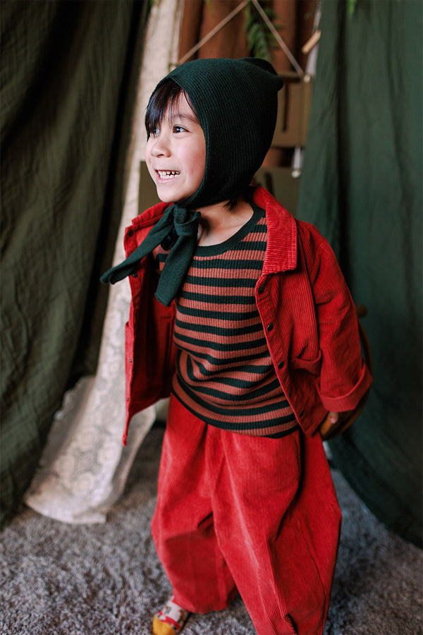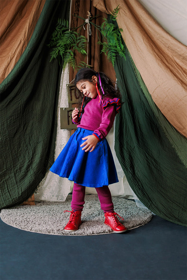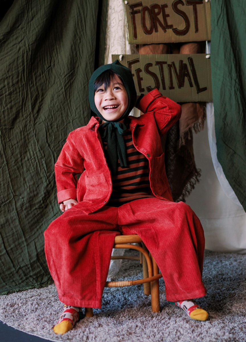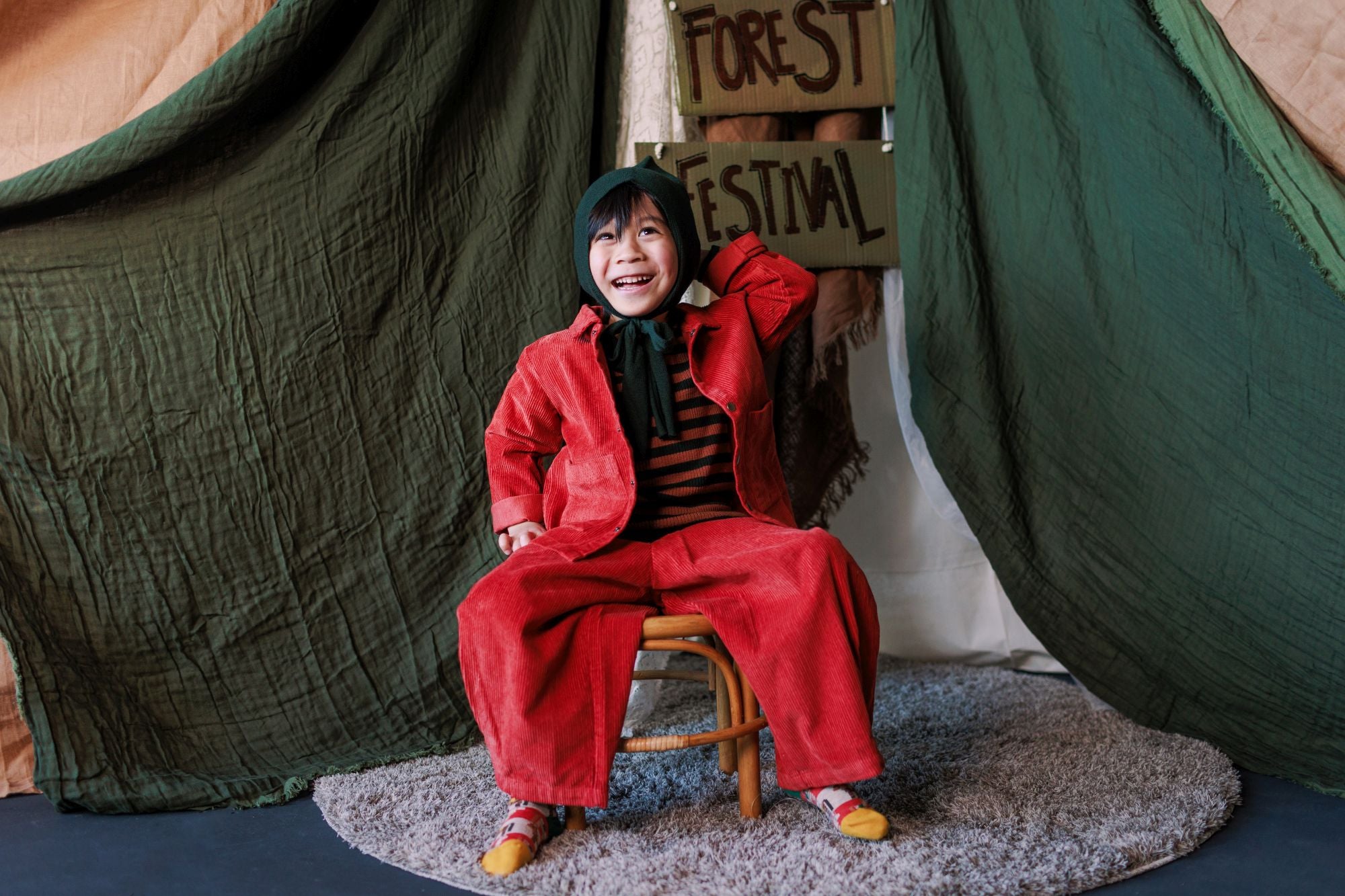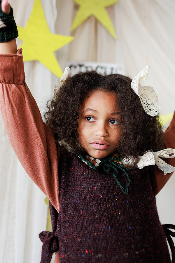 Come with us to the Circus Camp and the Forest Festival, where the vibrant energy of the 80s combines with outdoor adventures for Autumn days. A whimsical combination of nostalgia and nature, mixing retro jacquards and stripes, fun accessories, hand crochet, twirly dresses and more . All in our amazingly soft superfine Merino Wool!