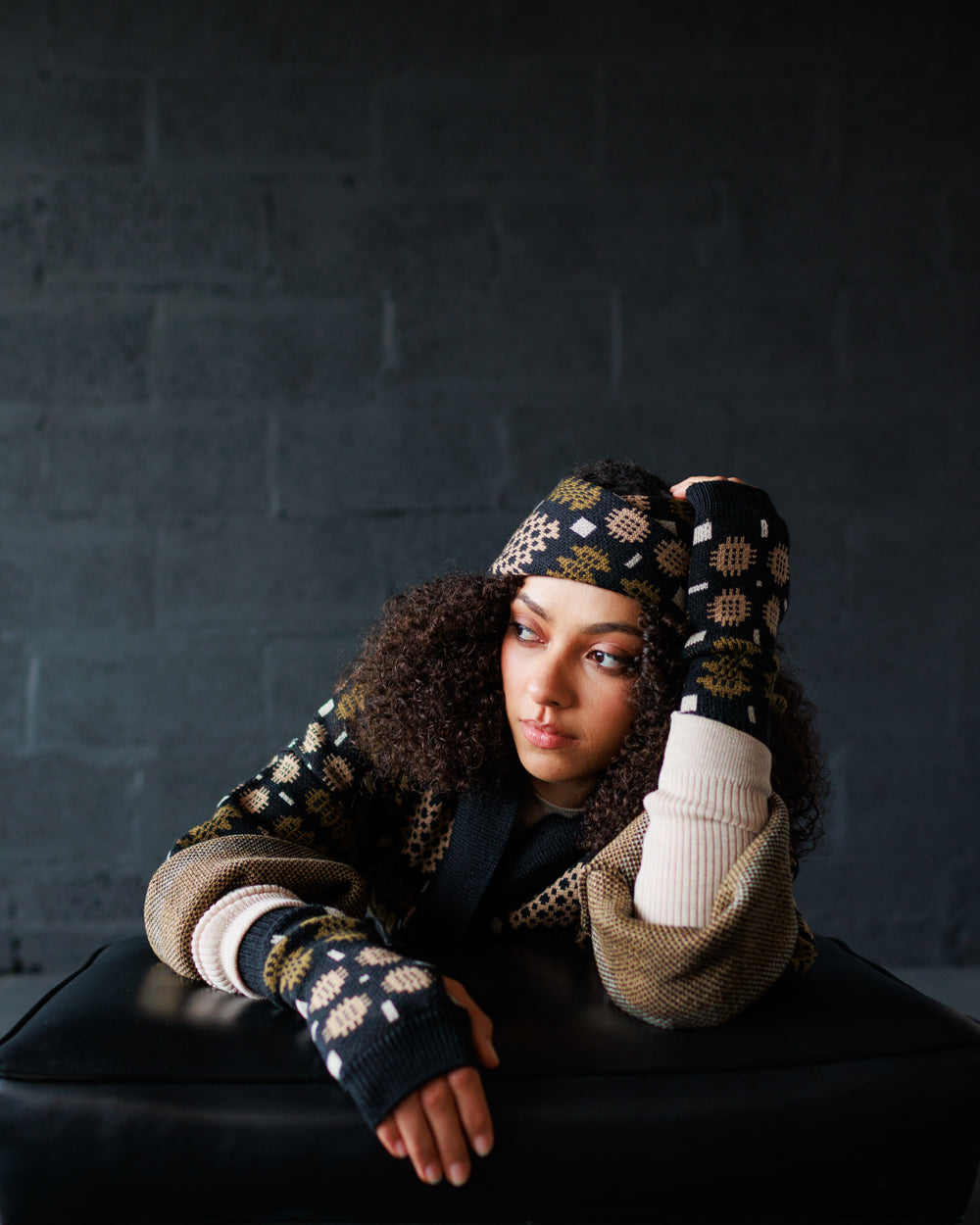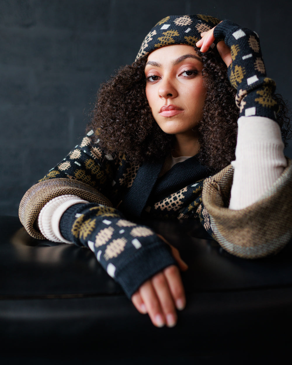 A cosy pair of fingerless mittens, featuring our classic Welsh Tapestry-inspired jacquard.