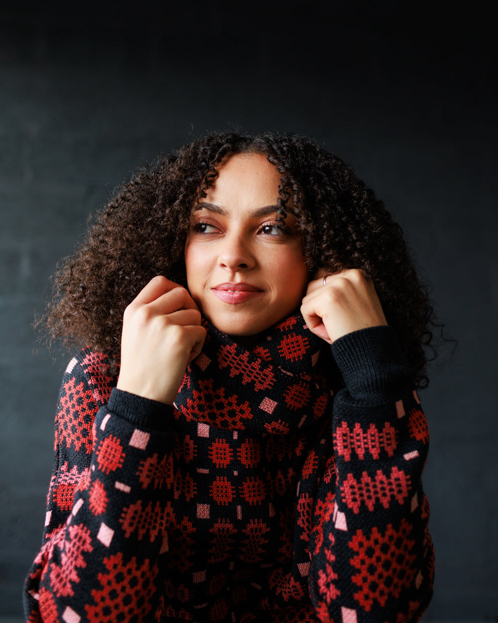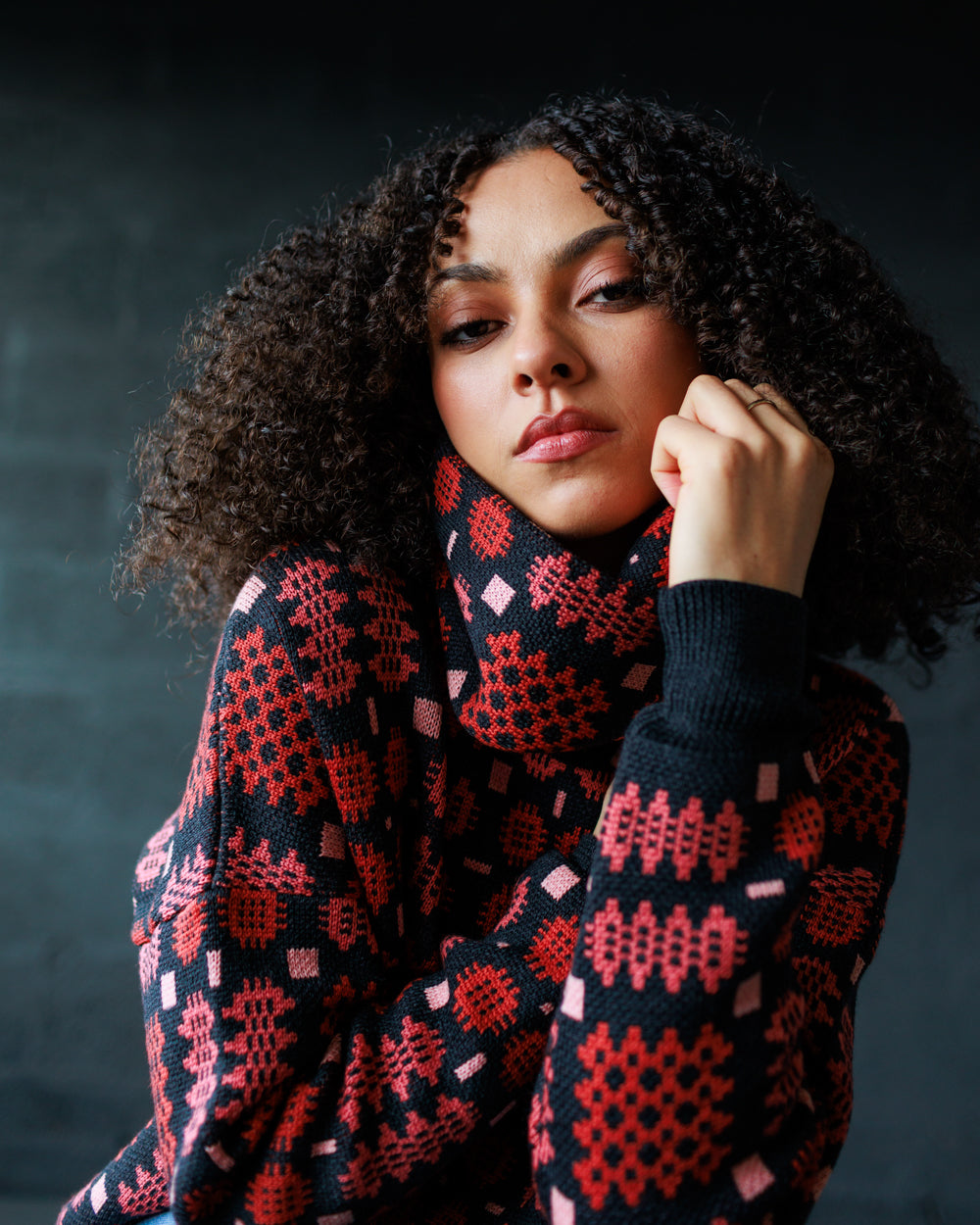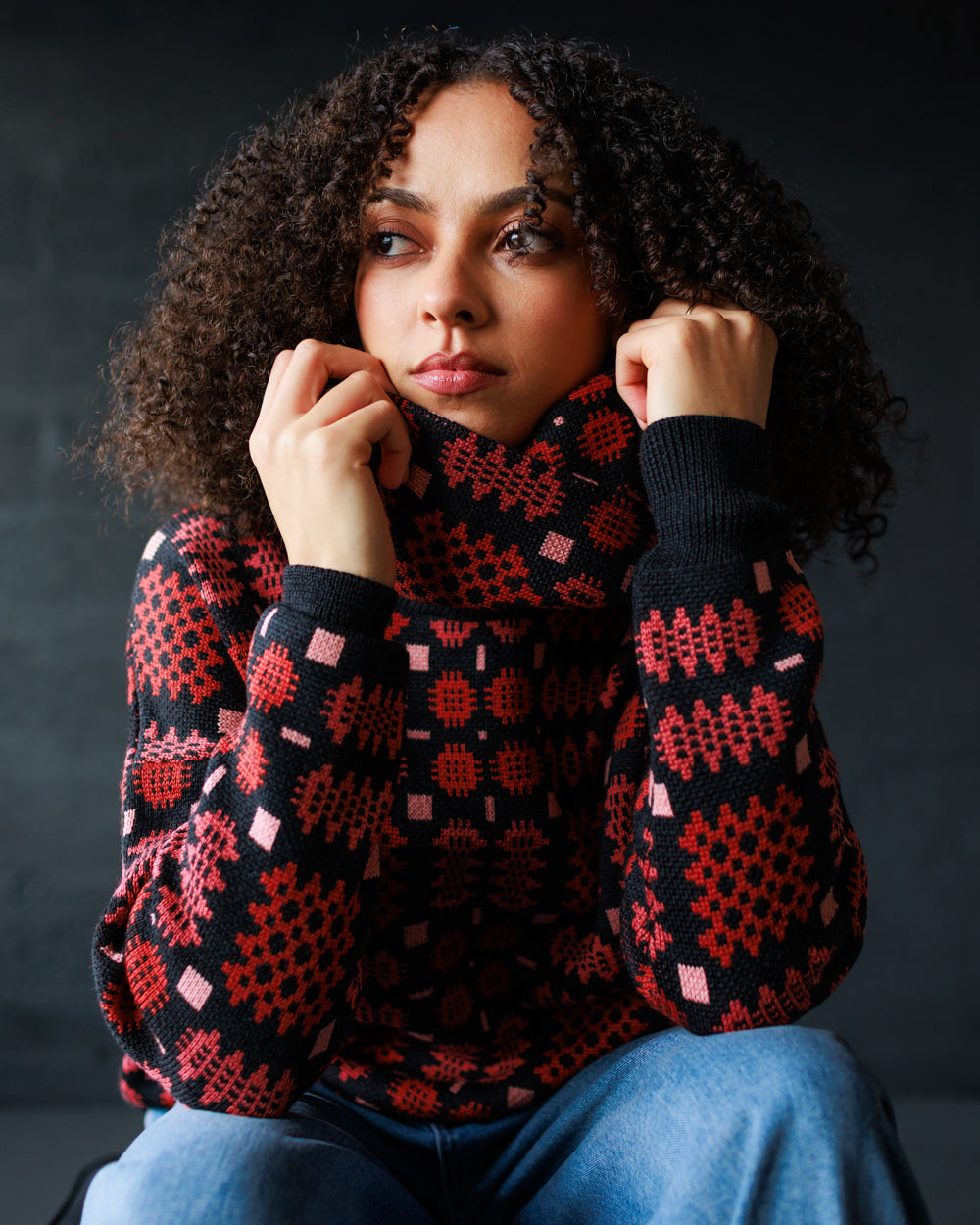 Our classic Carthen wrap features a bold, Welsh Tapestry-inspired jacquard. Wear it around the neck or head, with the twist at the front or back. Crafted from supersoft, mid-weight 100% extrafine Merino wool for extra coziness.