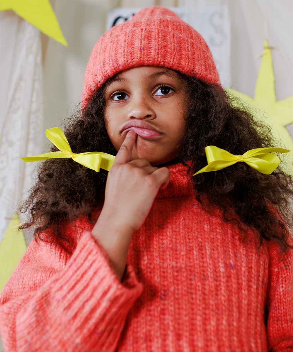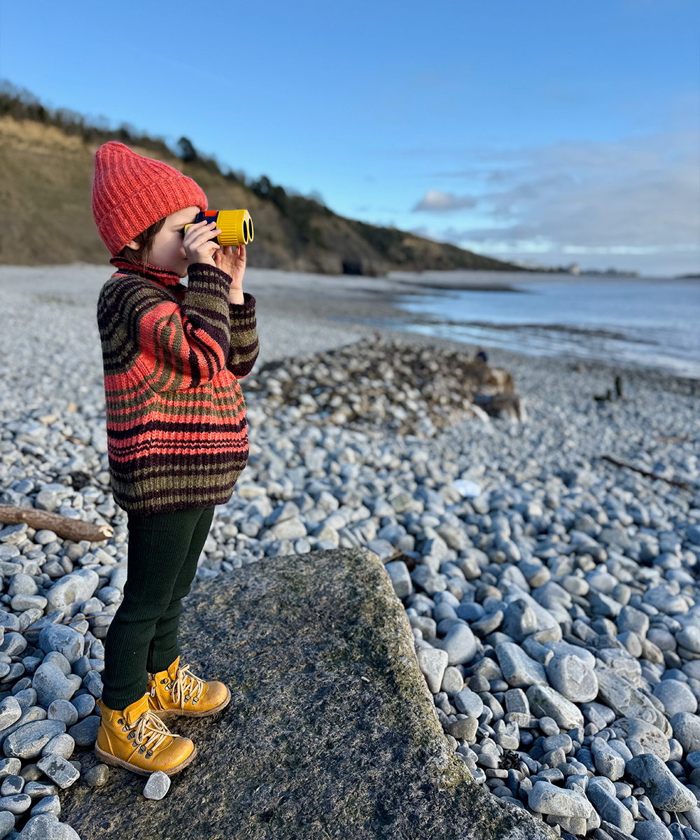 Knitted in a fisherman's rib stitch, in a speckled cloud-like light yet chunky yarn.