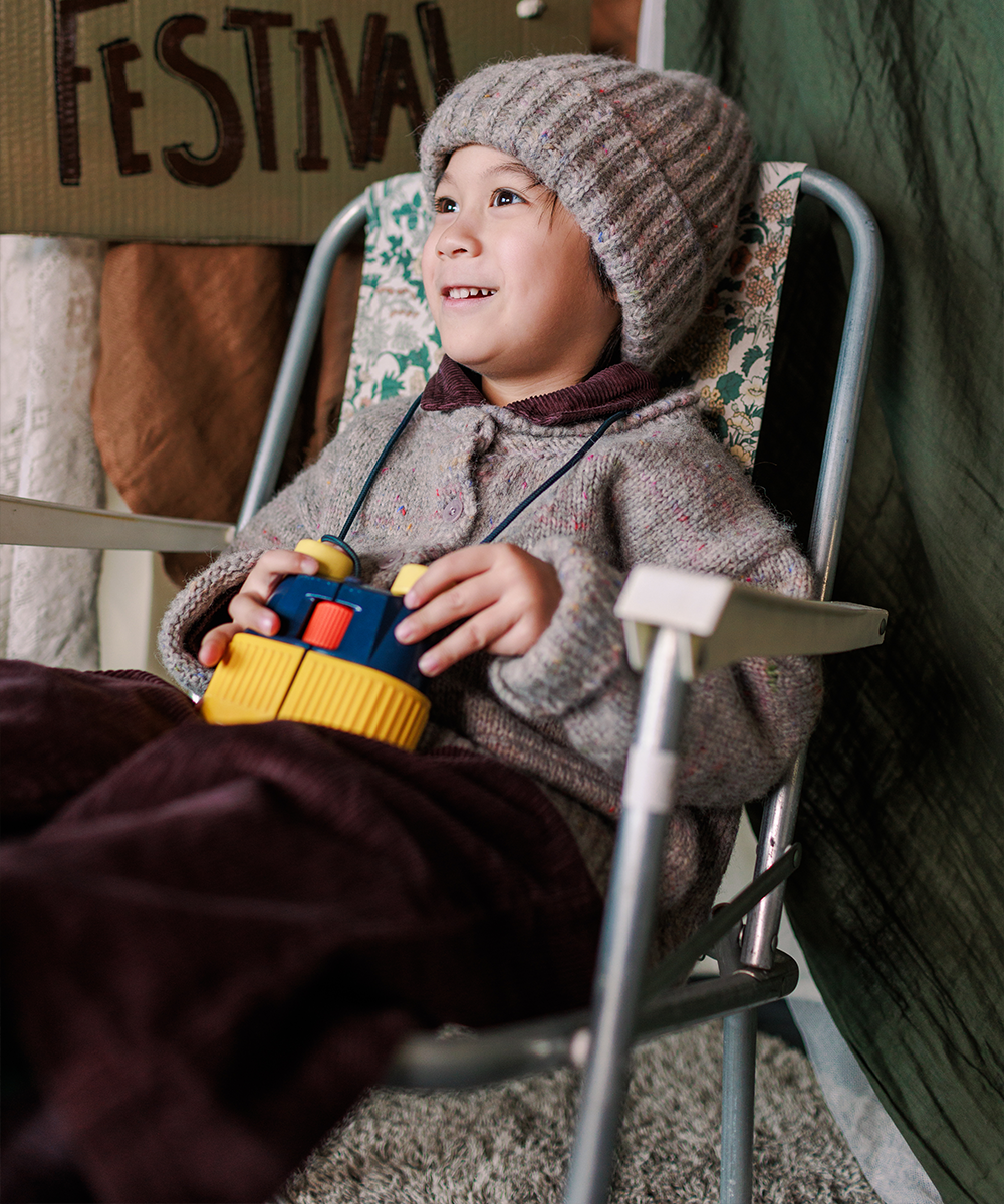 Knitted in a fisherman's rib stitch, in a speckled cloud-like light yet chunky yarn.