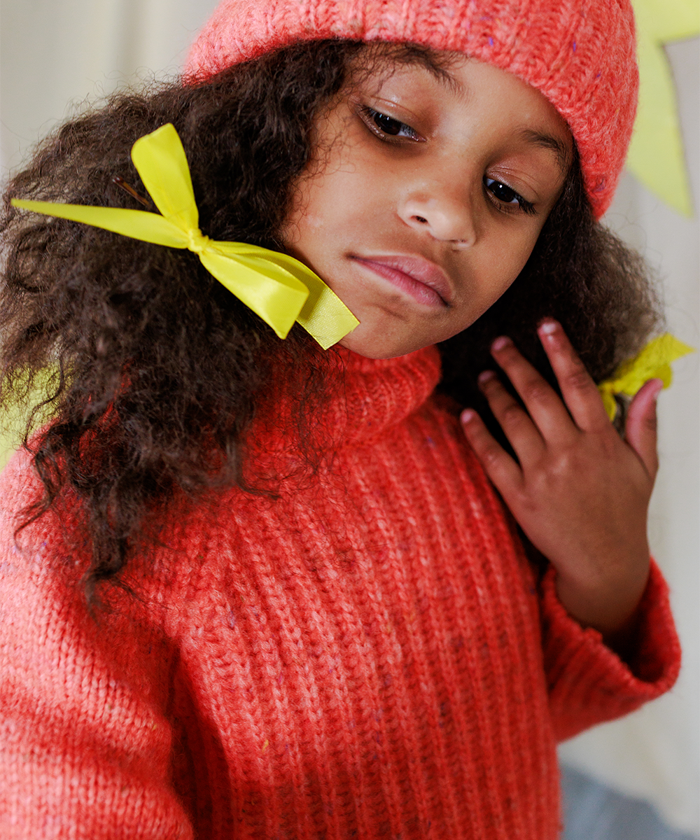 Knitted in a plain knit stitch, in a speckled cloud-like light yet chunky yarn.