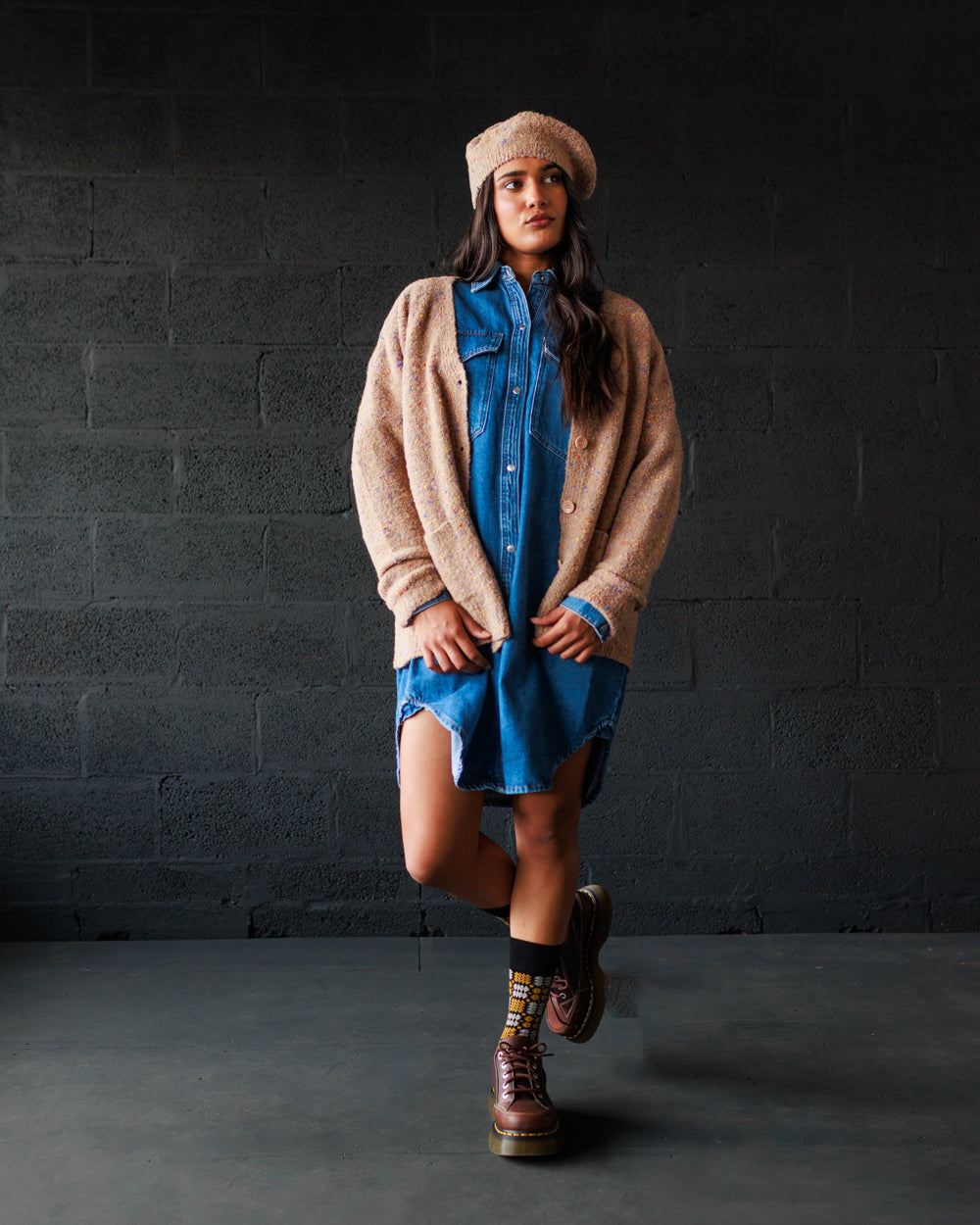 Knitted in reverse stitch to accentuate the rainbow sprinkles twisted through the yarn.