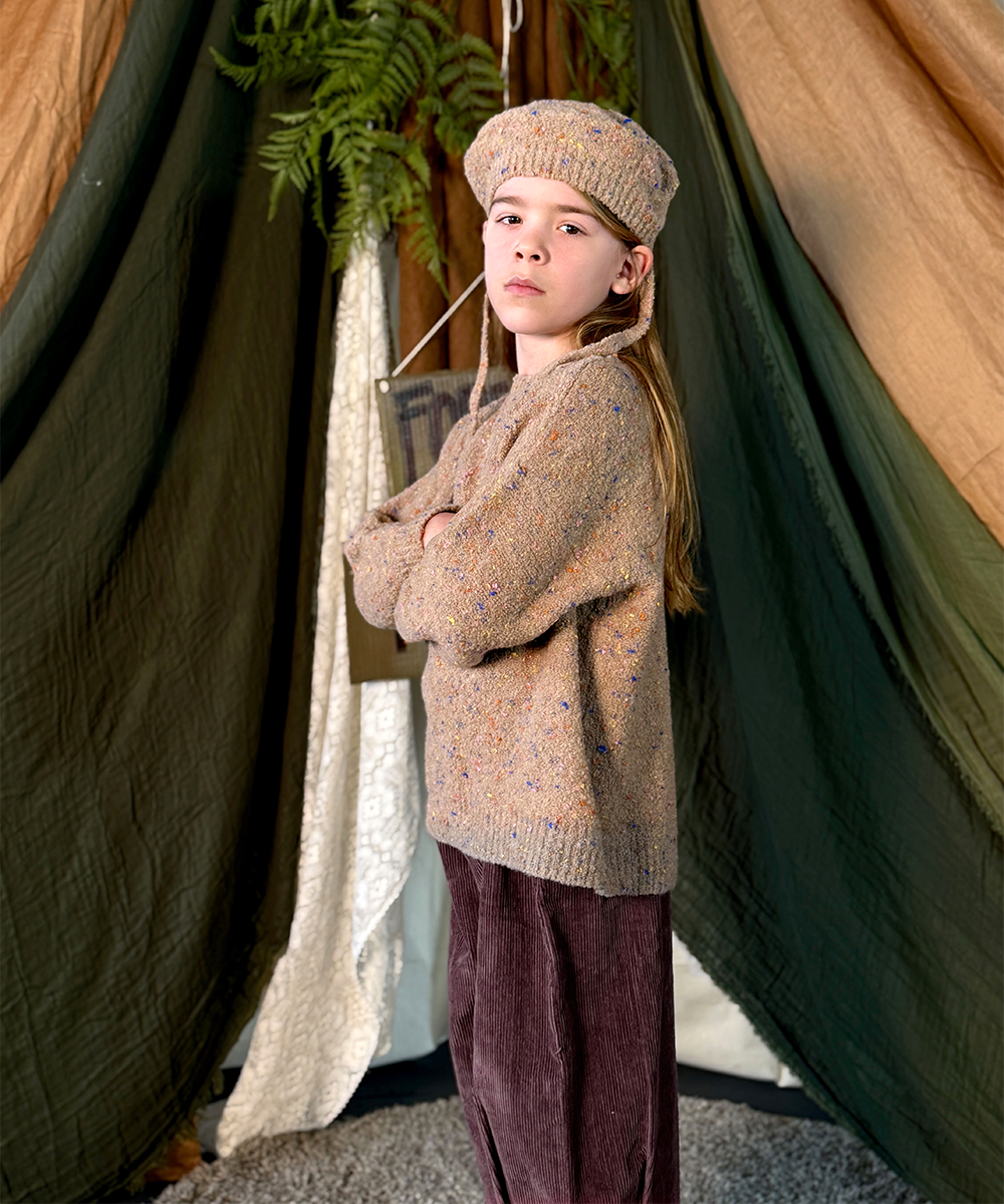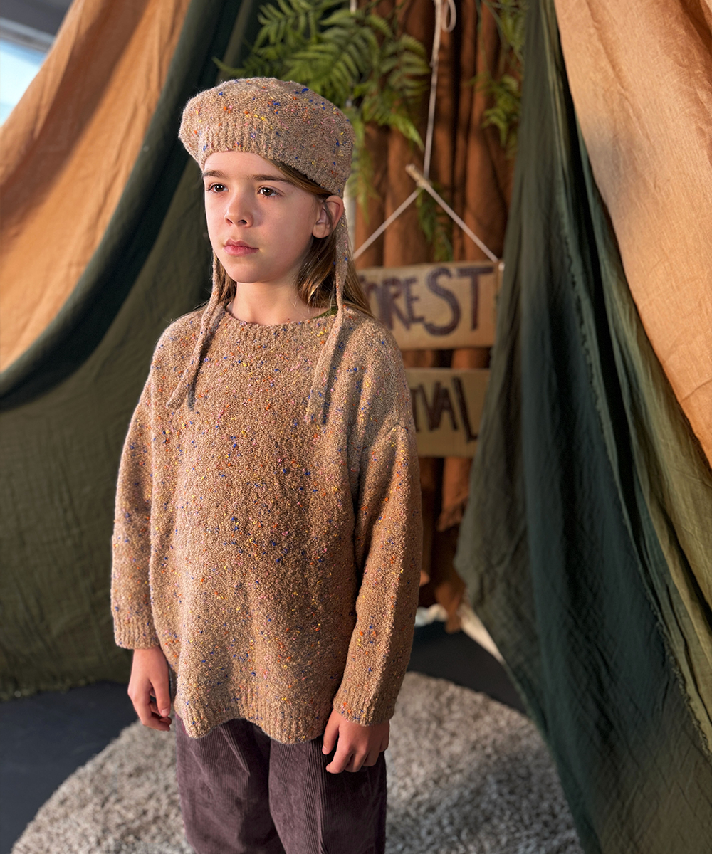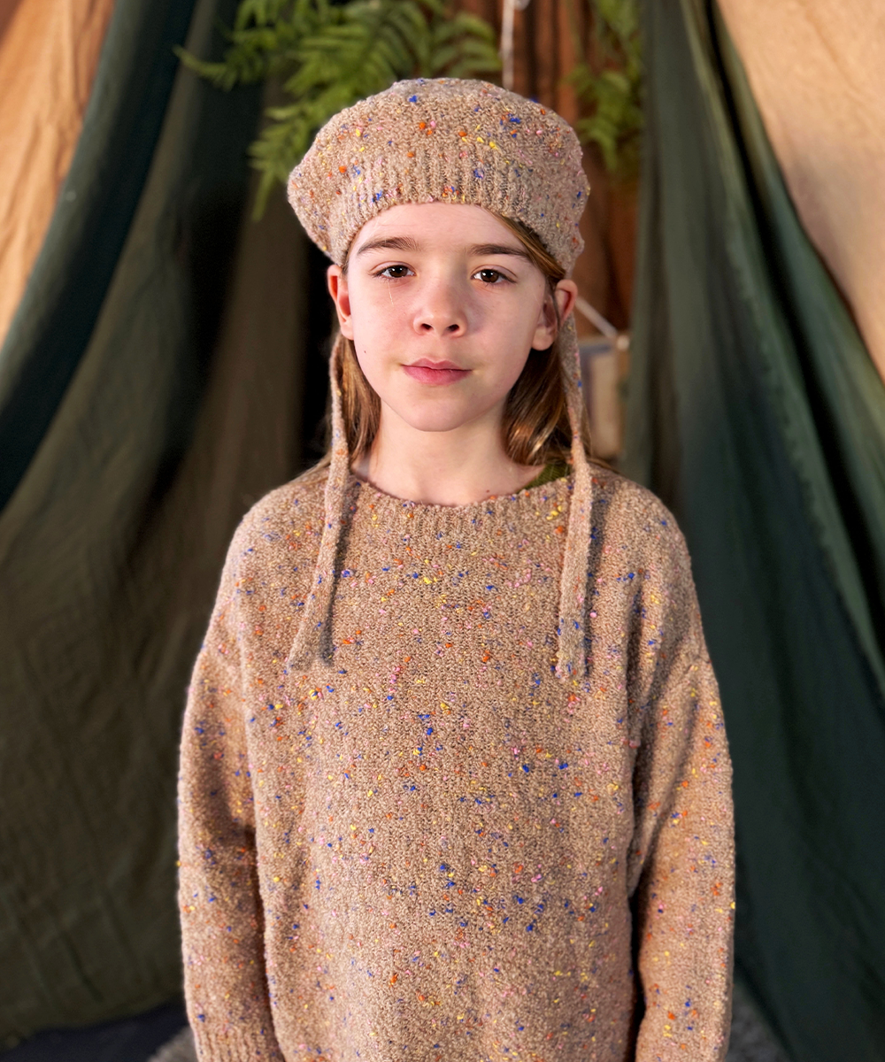 Knitted in reverse stitch to accentuate the rainbow sprinkles twisted through the yarn.
