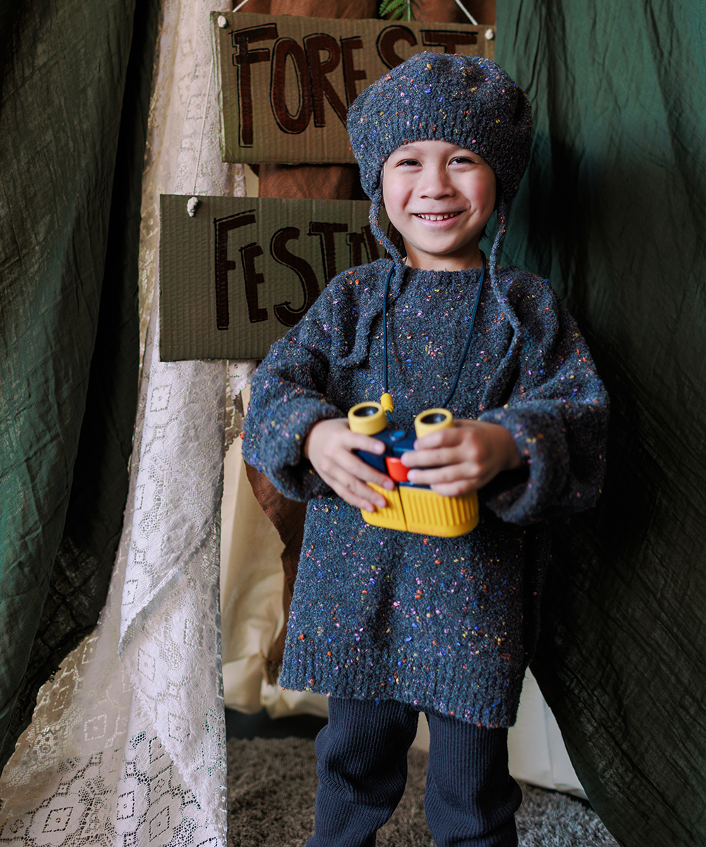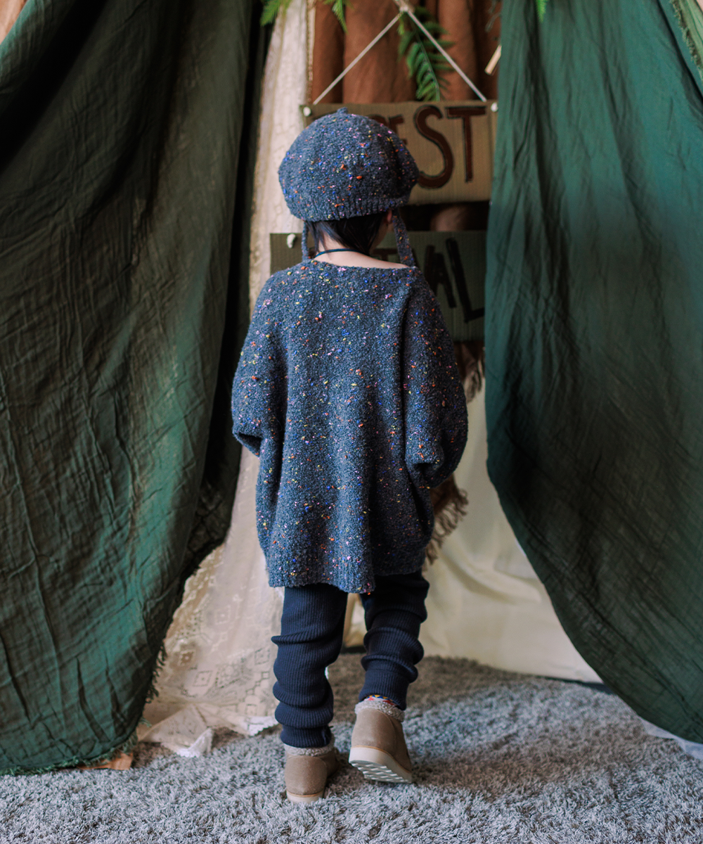 Knitted in reverse stitch to accentuate the rainbow sprinkles twisted through the yarn.