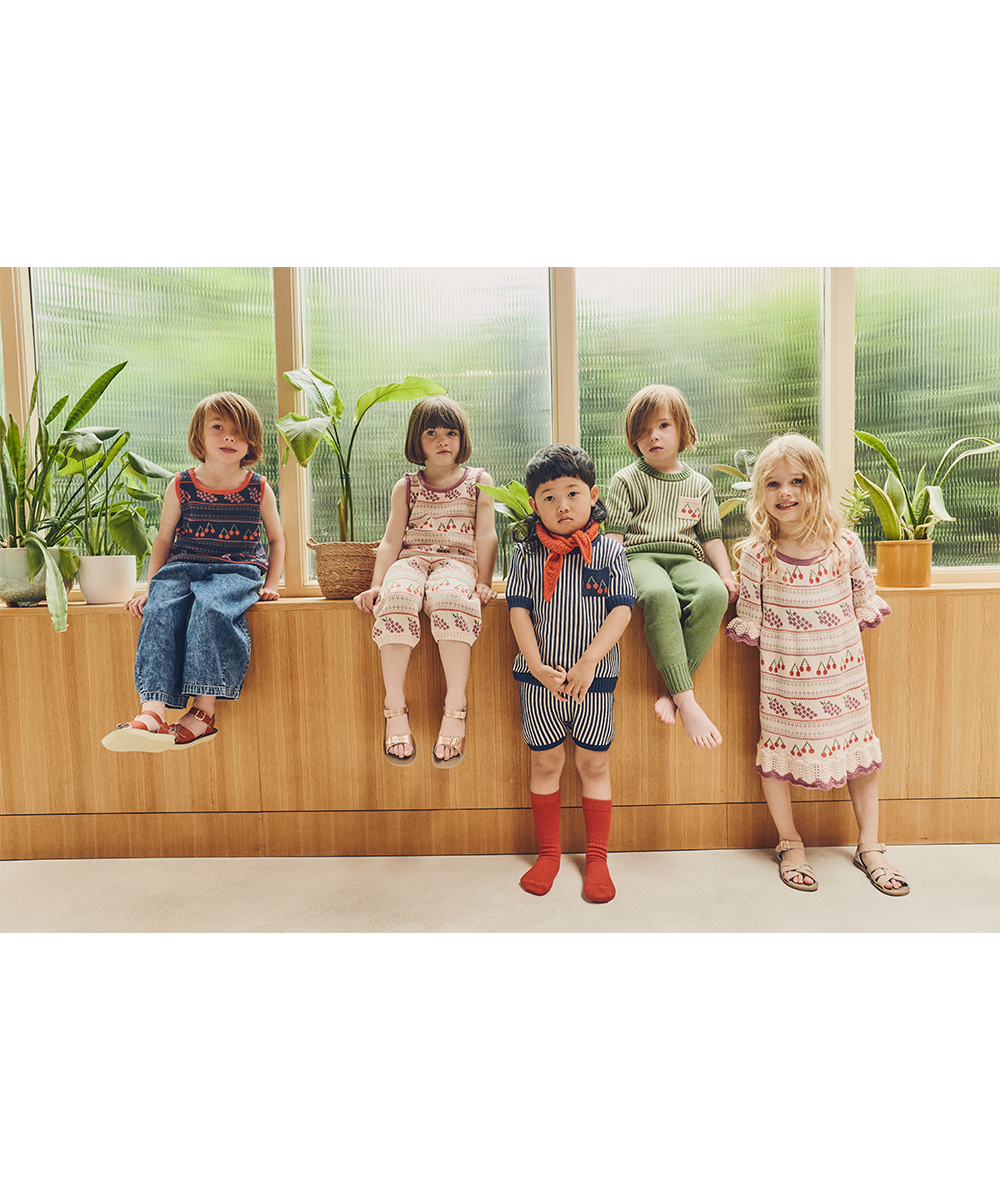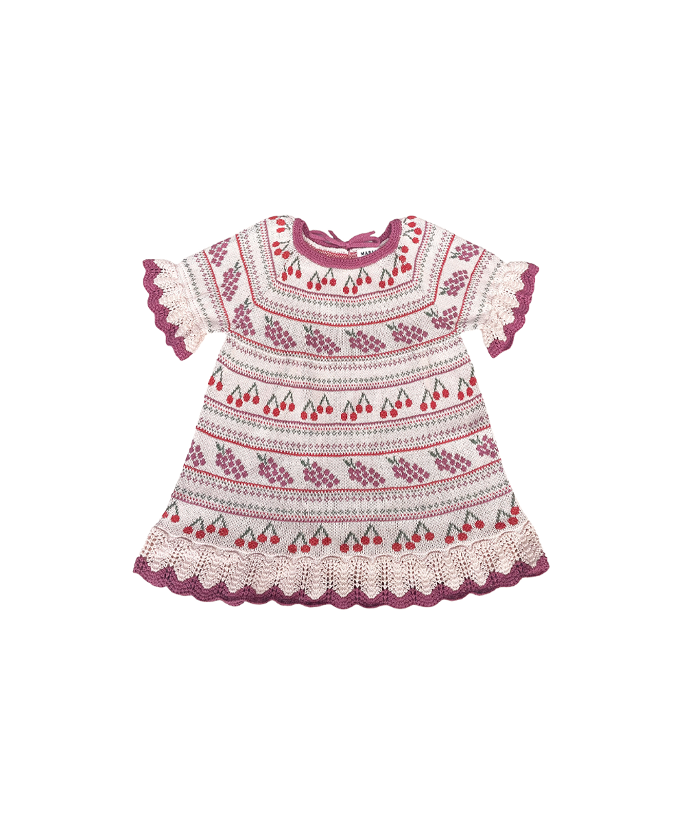 Knitted in a fruity jacqaurd of cherries and grapes.