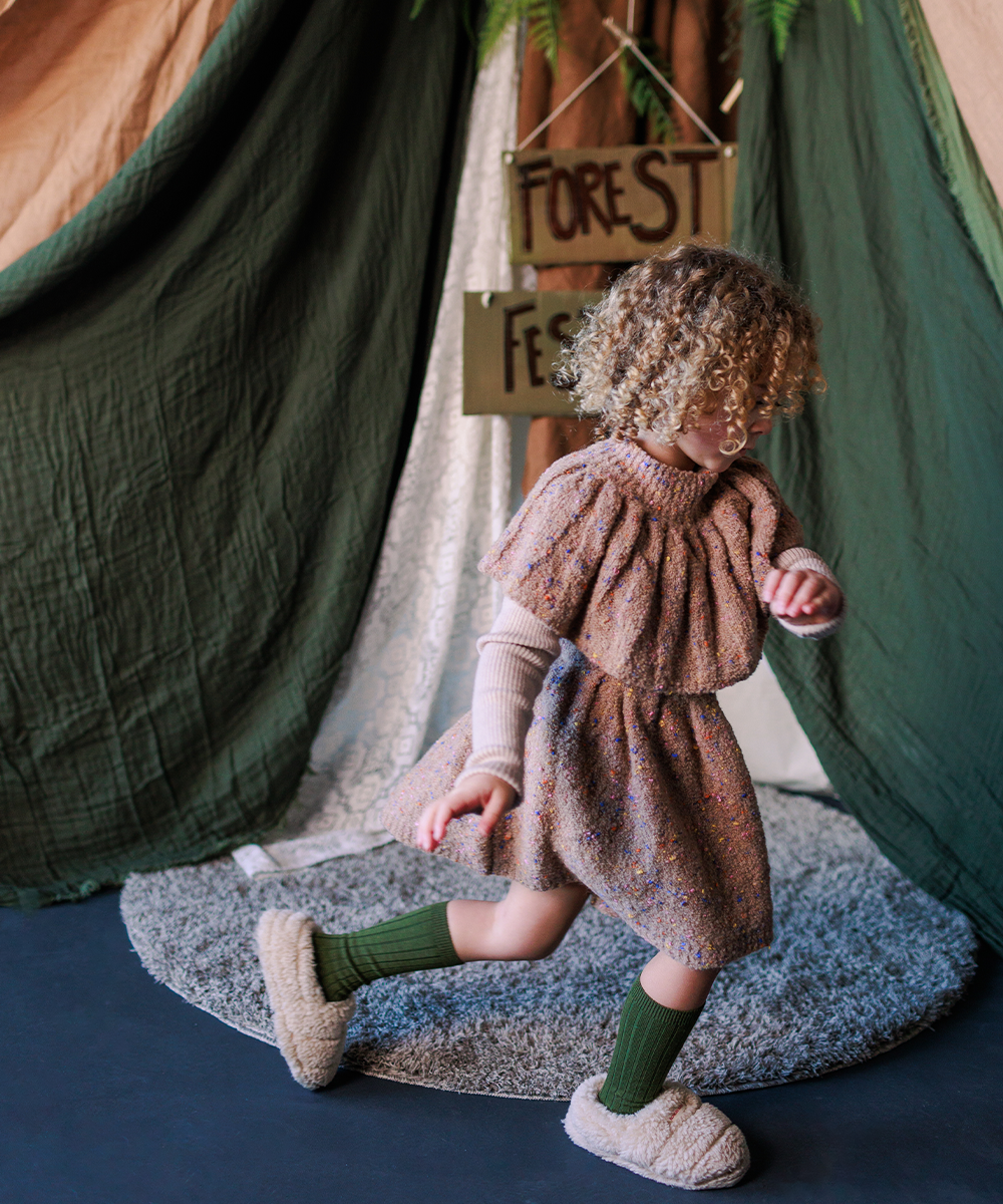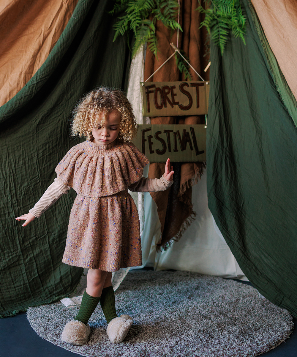 Knitted in reverse stitch to accentuate the rainbow sprinkles twisted through the yarn.