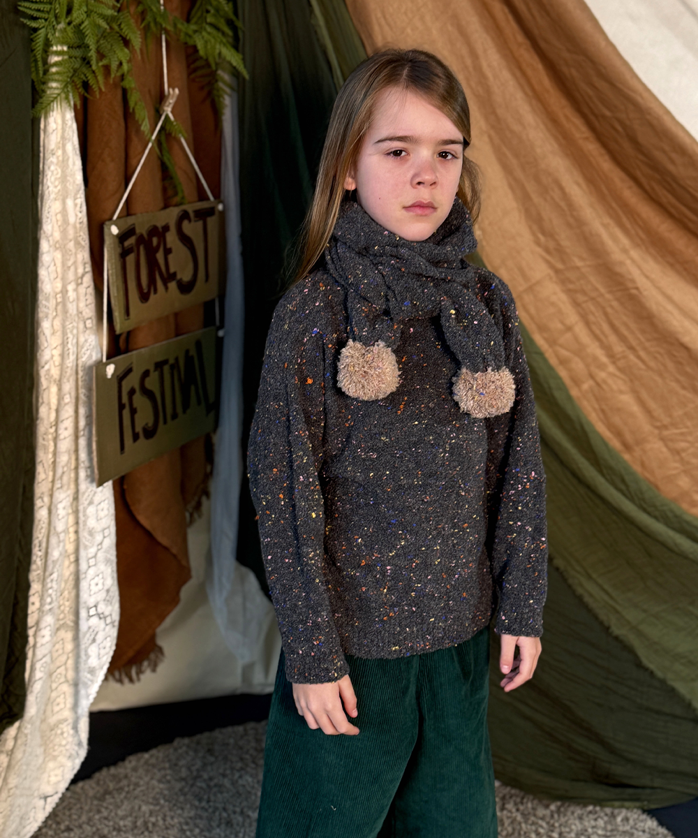 Knitted in reverse stitch to accentuate the rainboy sprinkles twisted through the yarn.